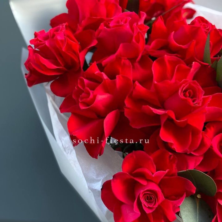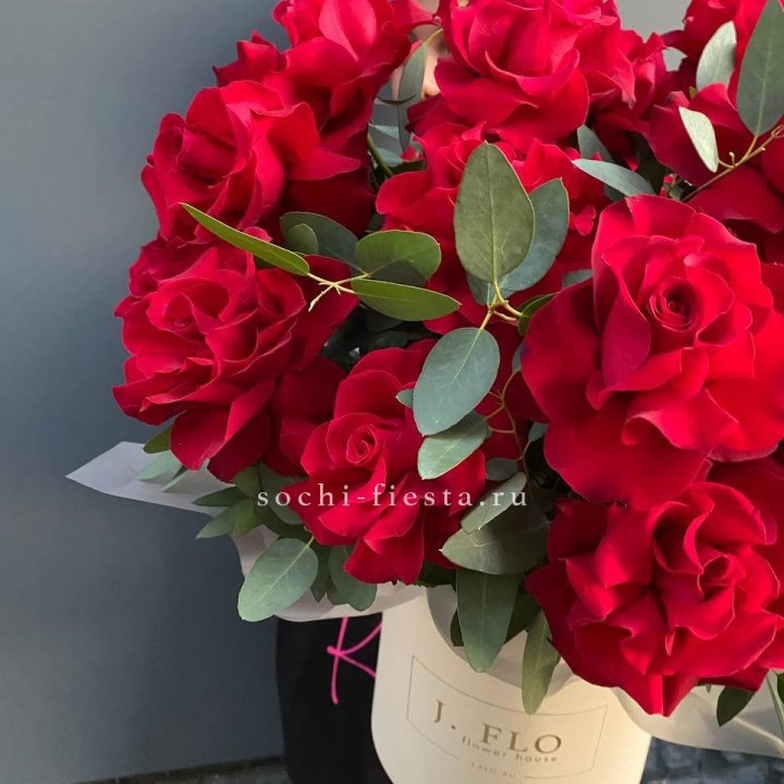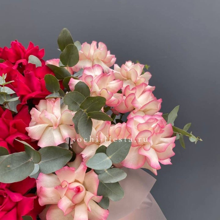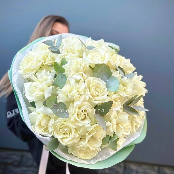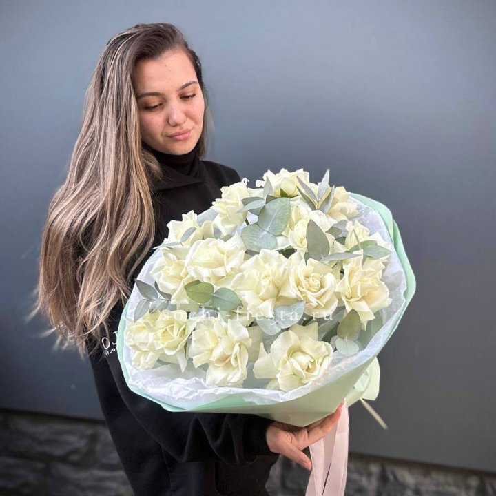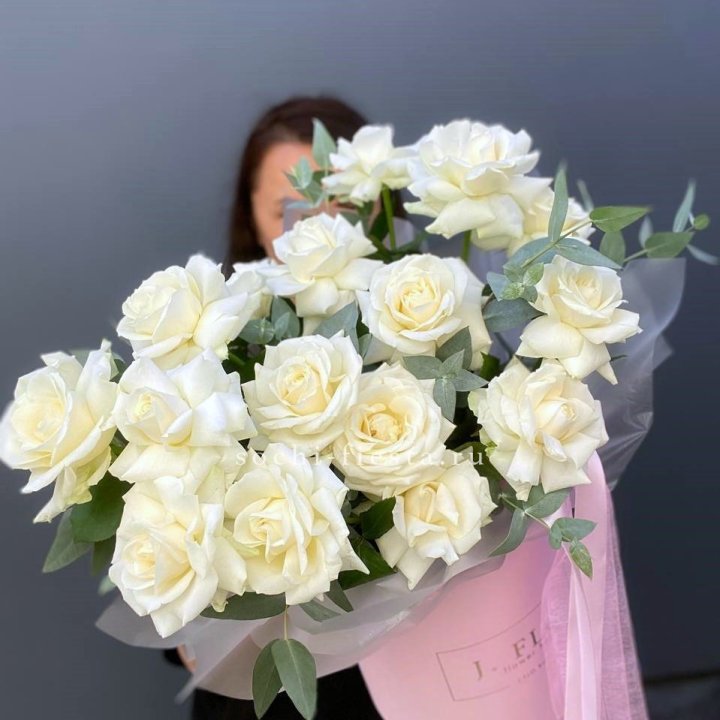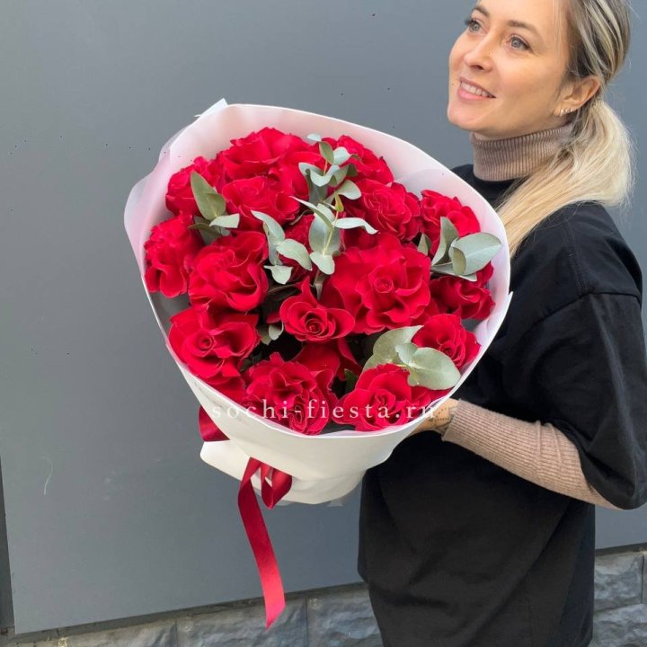 21 французских роз с эвкалиптом