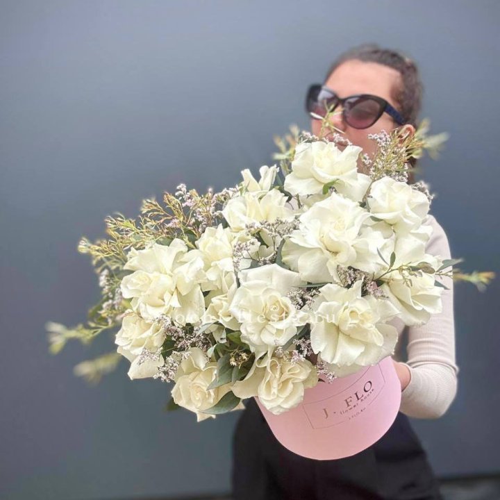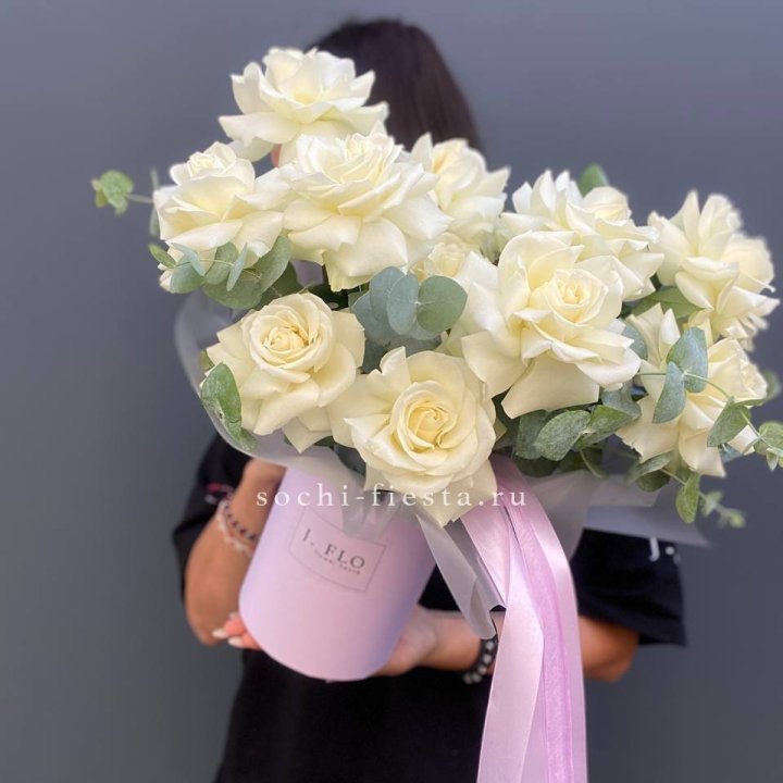 17 Французских белых роз в коробке Афина