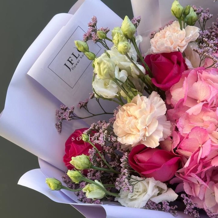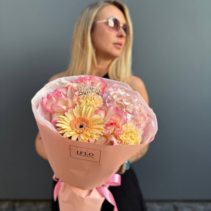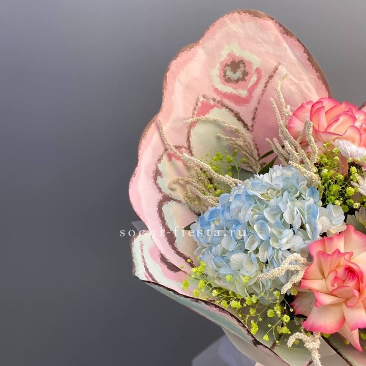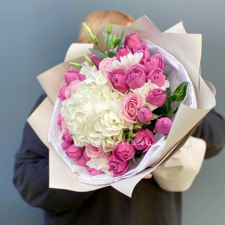 Букет роз, гортензии, гербер