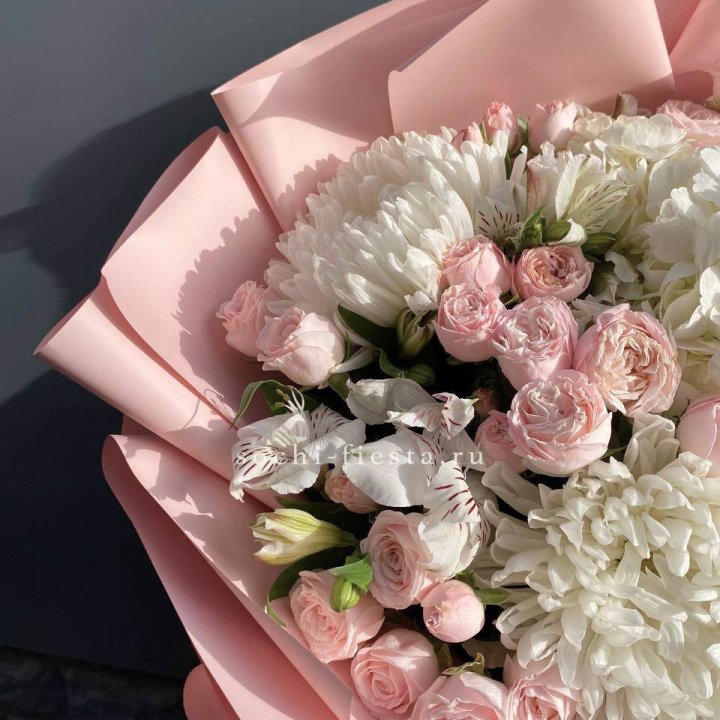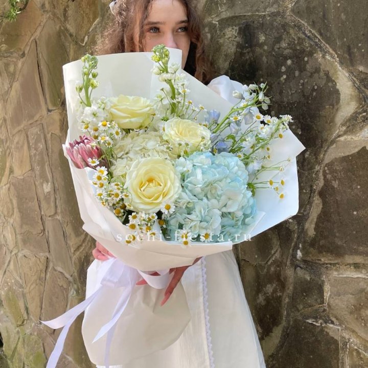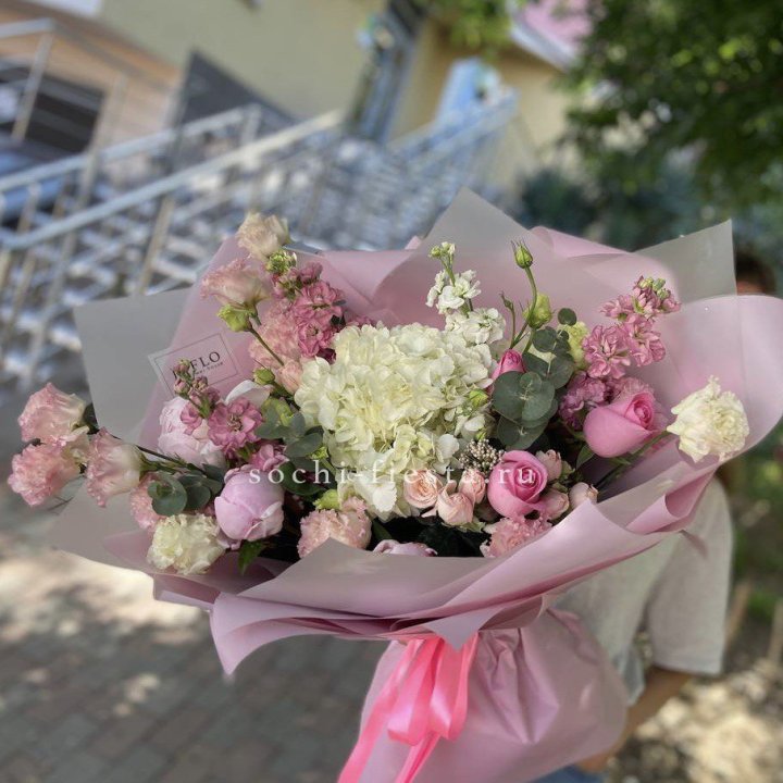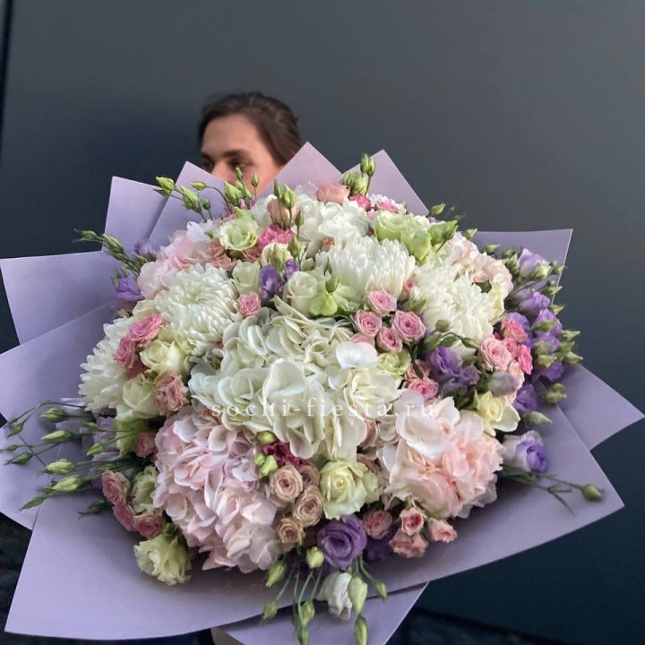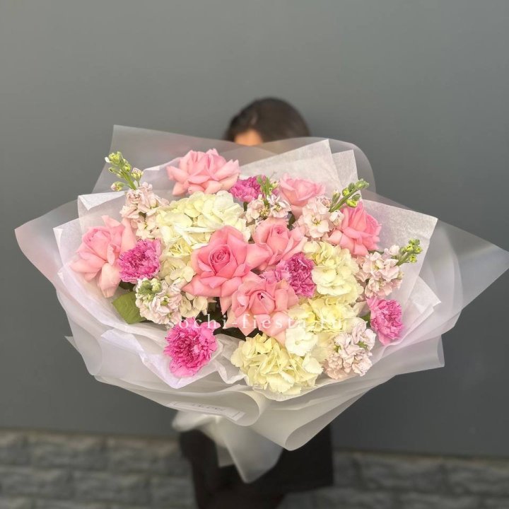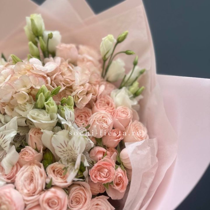 Букет гортензии и кустовых роз