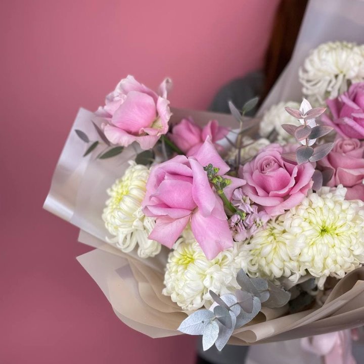 Букеты из розовых роз