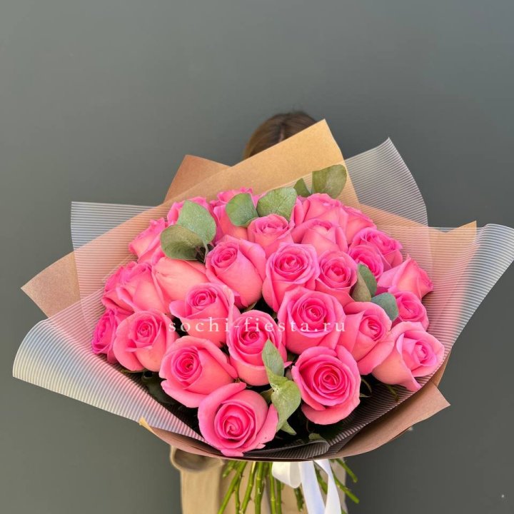 31 розовая роза с эвкалиптом