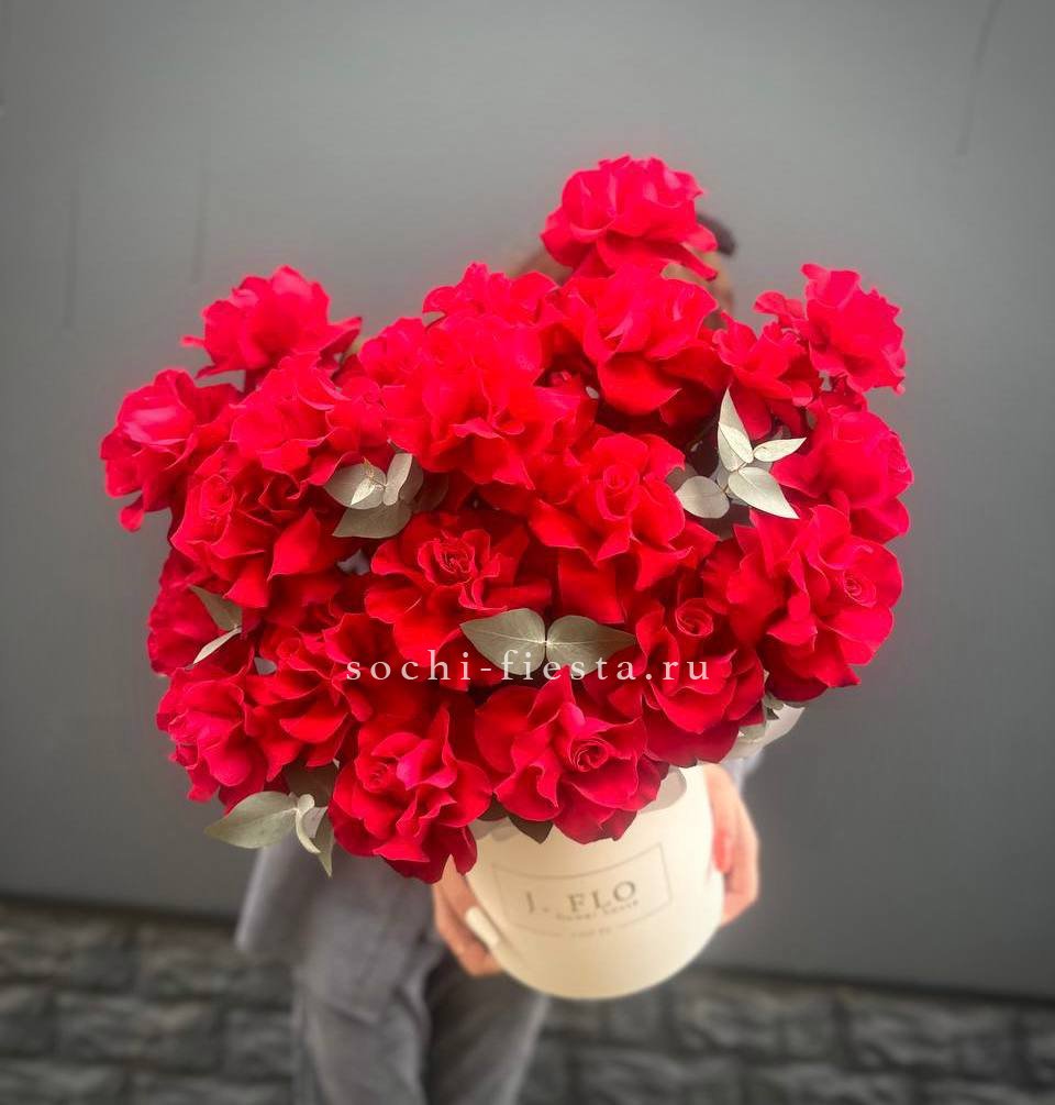 вывернутые розы Джумилия, цилиндр D20, эвкалипт, лента, упаковка.