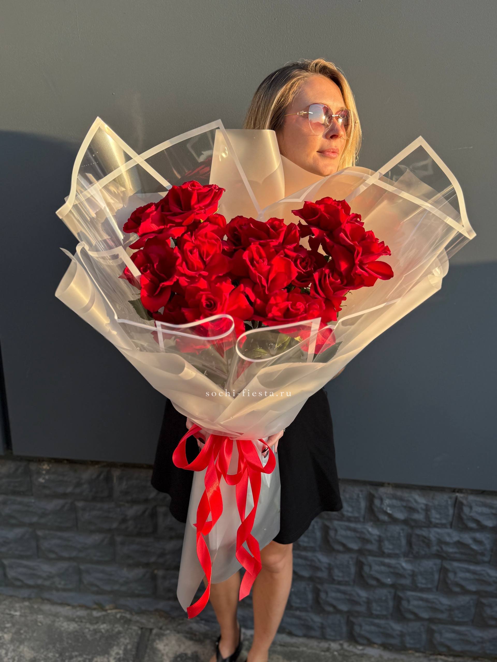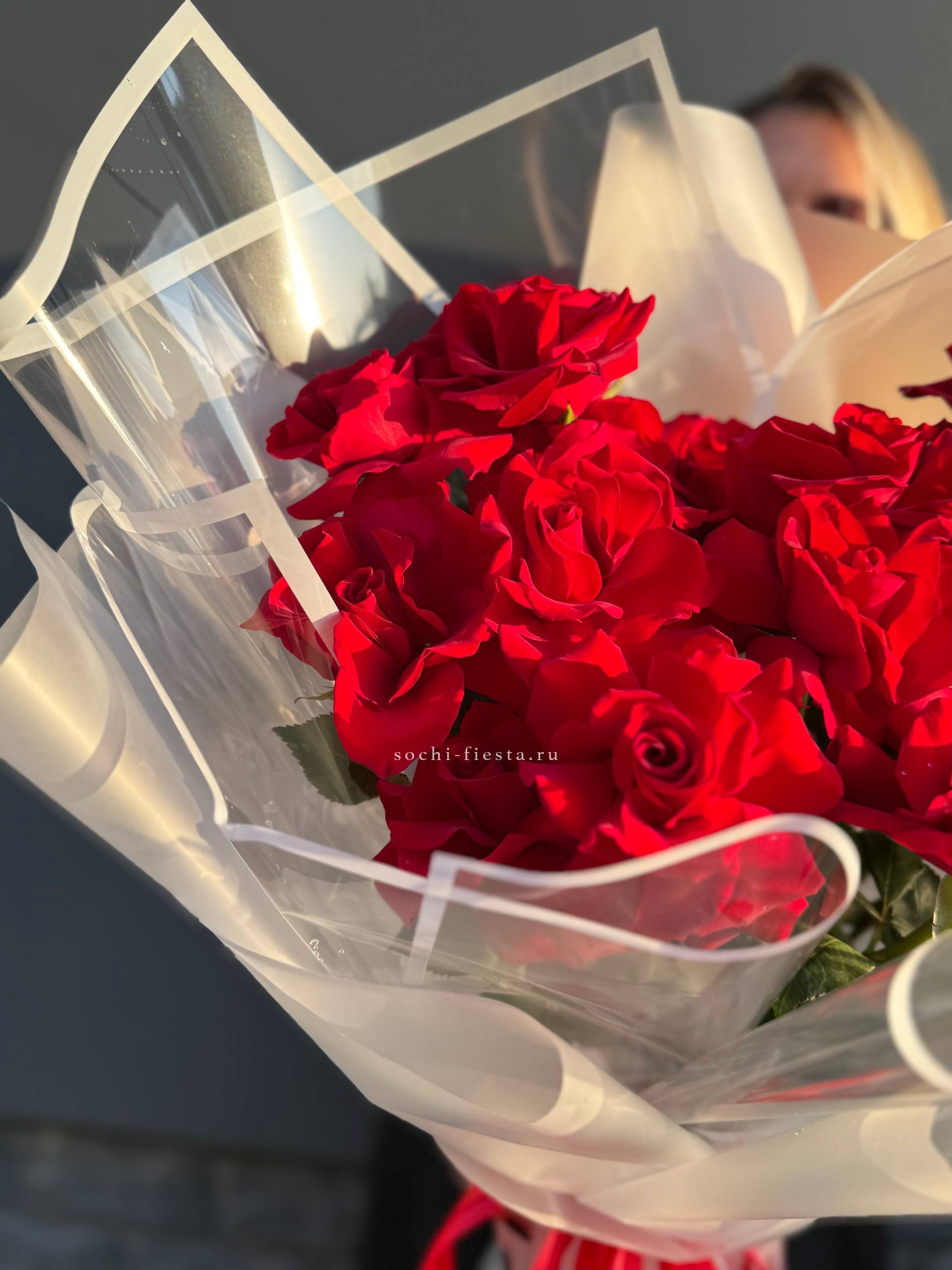 Тридцать пять кенийских роз в лаконичной упаковке подходят для современного интерьера и динамичного ритма жизни. Букет выглядит актуально и вписывается в минималистичную эстетику.