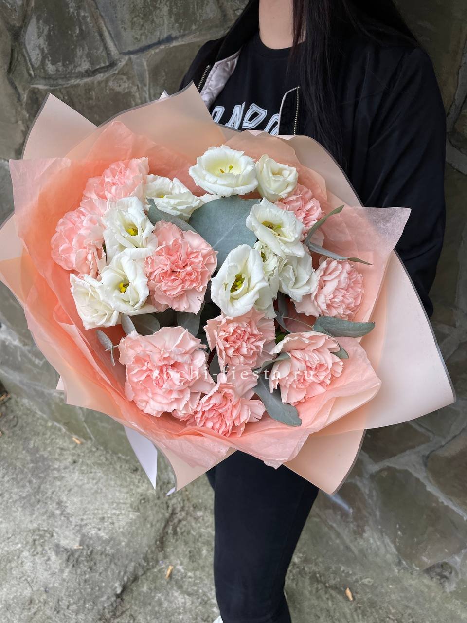 Букет белых диантусов с эвкалиптом