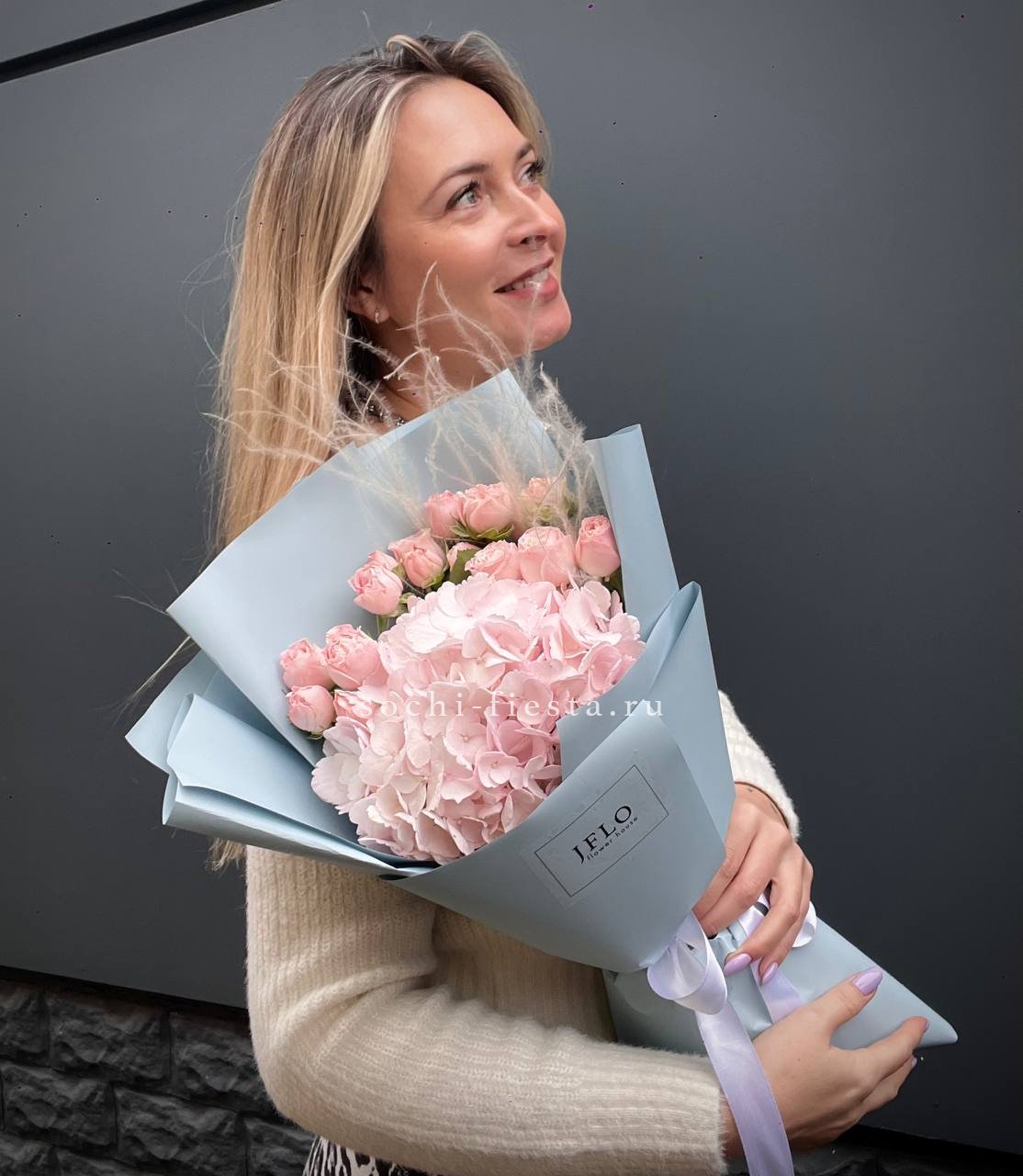 Эта роскошная композиция в модной упаковке объединяет благородные цветы с разными текстурами, создавая многогранный и богатый образ. Деликатные оттенки символизируют утонченность, элегантность и безупречный вкус. Букет подчеркнет индивидуальность дарителя и станет незабываемым акцентом любого торжества.