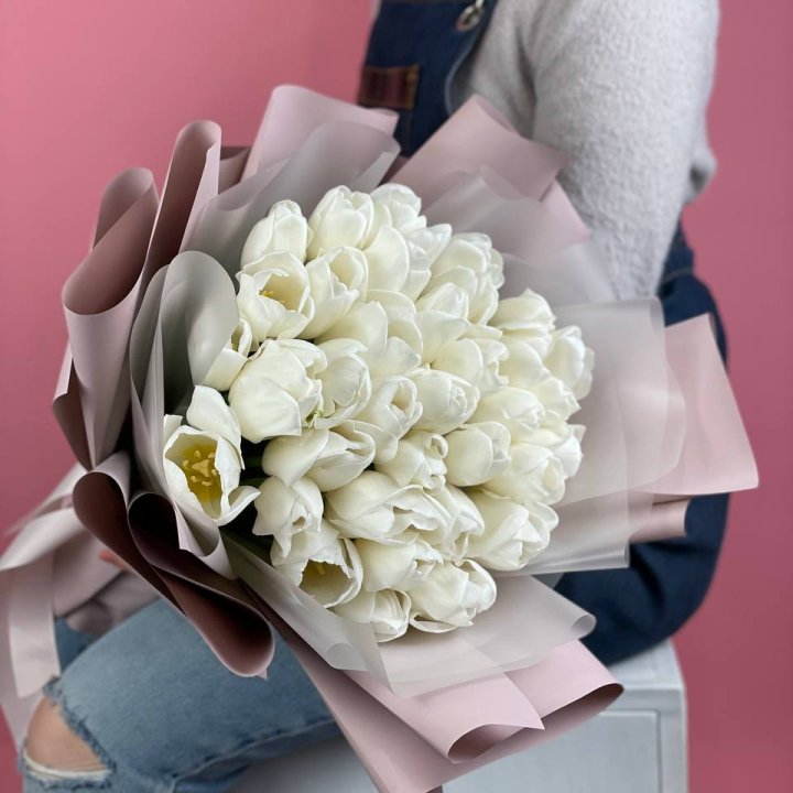 Красноярский клиент часто заказывает по конкретному виду. «Хочу 51 розу», «белые пионы в июне», «крупная корзина на юбилей» — запрос прямой, флорист подбирает сорт из актуального привоза и предлагает формат композиции.