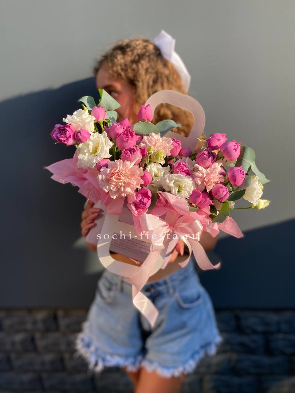 Для заказа товара "Сумочка с кустовой розой и диантусами" с доставкой в Красноярске нажмите в корзину
