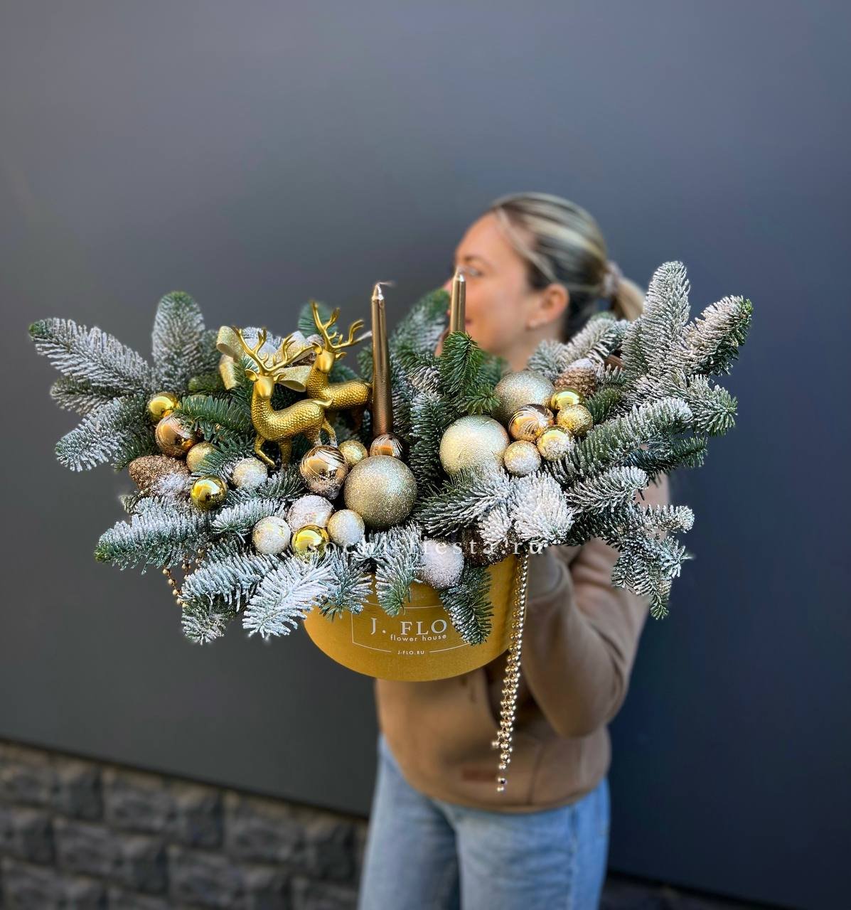 нобилис, цилиндр, оазис, свечи, новогодние игрушки, декор ВНИМАНИЕ! Готовая композиция (декор) может иметь незначительные внешние отличия от примера на фотографии.